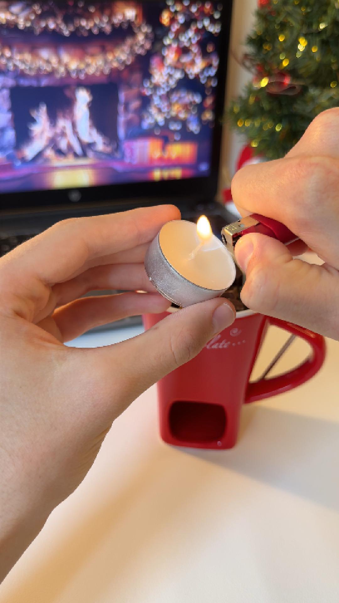 Wystarczy zapalić małą świeczkę pod spodem po 5 minutach czekolada jest gładka, ciepła i gotowa do rozkoszowania się. Zanurz owoce, ciastka lub pianki i zamień zwykły wieczór w przytulny, niezapomniany moment.